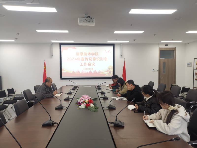 3月4日,信息技术学院在泰隆大厦918会议室召开学院宣传思想工作专题会议,本次会议由学院党总支书记莫淦清主持,王琴副书记、熊建宇副院长及院办、学工办相关人员参加了此次会议。