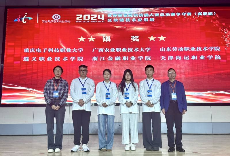 10月31日,2024年世界职业院校技能大赛总决赛争夺赛“区块链技术应用”赛项落下帷幕。来自全国各省、区、市高职院校的60支代表队展开激烈争夺。由信息技术学院教师陶再平和吴星星指导,由李悦、俞易琦、陈如慧、杨智淇四位同学组成的参赛团队喜获银奖,实现了学校在该项赛道上的历史性突破。