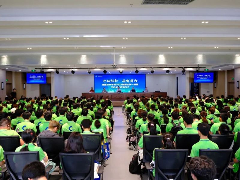 9月25日下午,信息技术学院2025级新生第一课暨千日成长启动仪式在绍兴校区会堂(杭州校区同步直播)隆重举行。学校党委委员、副校长张鹏超,学院领导以及各专业主任出席会议,学院新生班主任,学工办全体辅导员和2025级全体新生参会,会议由学院党总支副书记王琴主持。