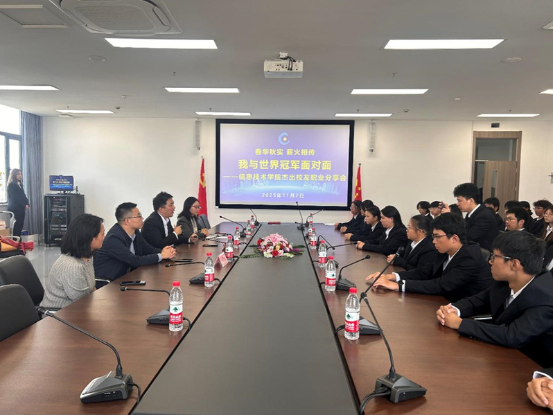 11月2日下午,信息技术学院在泰隆大楼918室开展“春华秋实薪火相传——我与世界冠军面对面”交流会。学院杰出校友陈良杰、方银余,2006级计算机专业班主任龙芳及学院学生代表参会,会议由信息技术学院党总支副书记王琴主持。