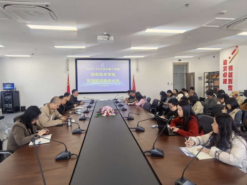 为全面落实省双高年度建设任务,加速推动人工智能技术应用专业群建设提质增效,2026年3月25日下午,信息技术学院在泰隆918会议室召开省双高建设推进会。学院院长陶再平主持会议,各专业、教研室主任及项目核心骨干教师参会,会议聚焦教材、实验室建设等关键项目的落实进度,对下一阶段攻坚任务进行部署动员。